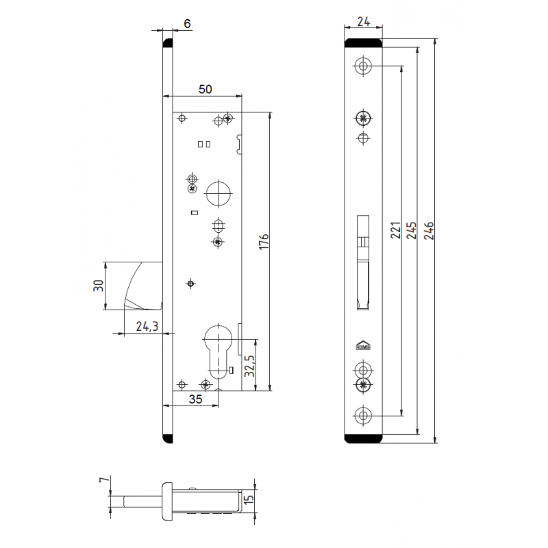 | Dormas | 35 mm – odległość od czoła zamka |