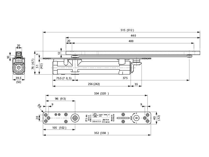 | Zestaw zawiera | • Samozamykacz dormakaba ITS 96 • Szyna ślizgowa G96N20 DIN-R |