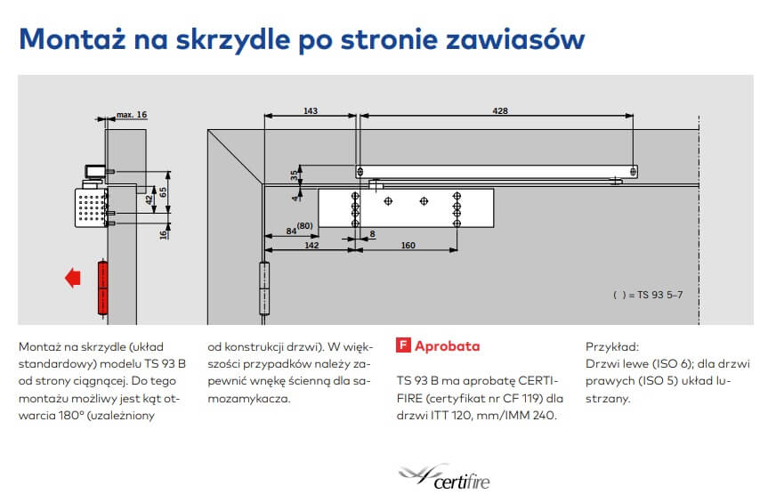 TS 93 B – montaż po stronie zawiasowej na skrzydle drzwiowym
