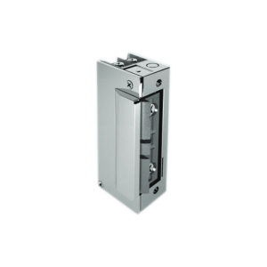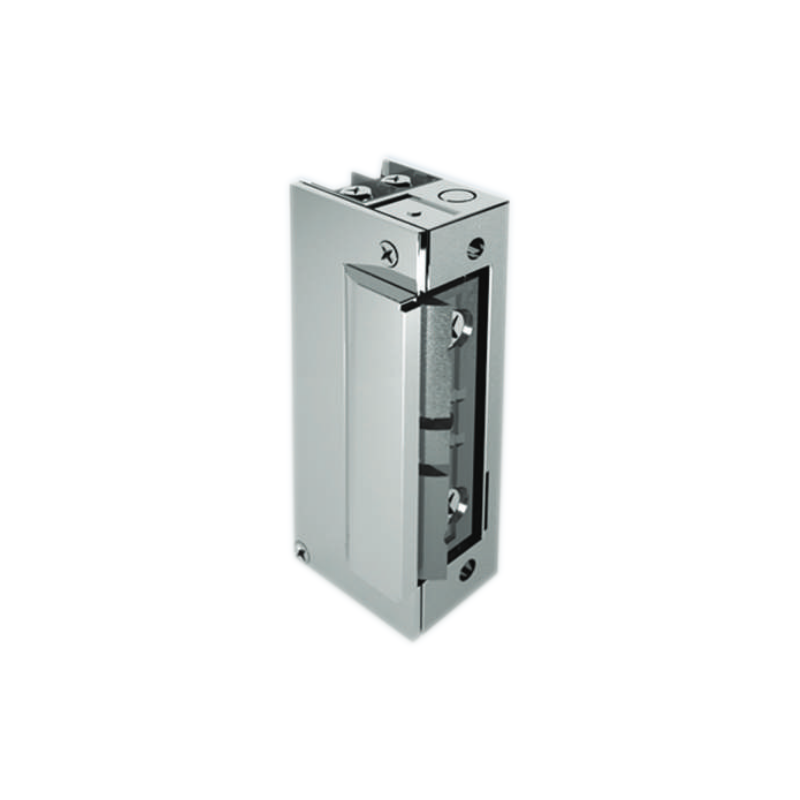 Zamek elektromagnetyczny w wersji rewersyjnej (normalnie otwarty) z wyślizgiem. Specjalna konstrukcja mechanizmu języka oraz wyślizgu zapadki zamka w obudowie powoduje otwarcie przy minimalnym wychyleniu. Umożliwia to montaż elektrozaczepu bez podcinania ościeżnicy od czoła drzwi.