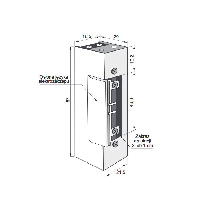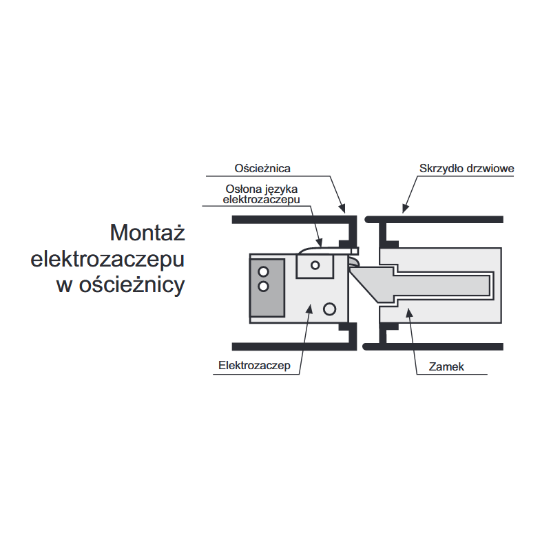 ZACZEP TYPU RADIALNEGO: Specjalna konstrukcja mechanizmu języka elektrozaczepu powoduje otwarcie przy minimalnym wychyleniu. Umożliwia to montaż elektrozaczepu przy mniejszym podcięciu ościeżnicy.