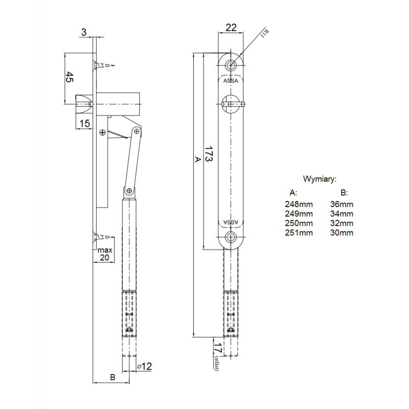 Kantrygiel półautomatyczny ASSA ABLOY 2396