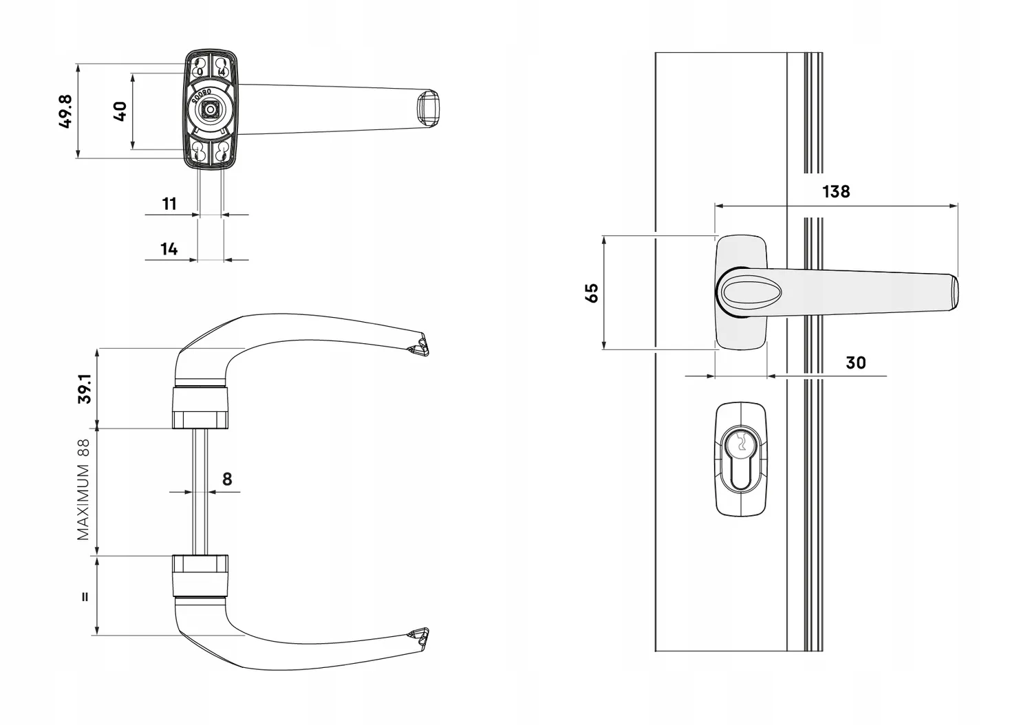 | Zestaw zawiera | • Komplet klamek (2 strony) • Trzpień 8 mm • Śruby montażowe |