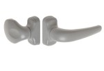 | Zalety | • Uniwersalny design – pasuje do białych profili PCV i drzwi aluminiowych • Solidna konstrukcja i trwała powłoka odporna na warunki atmosferyczne • Kompletny zestaw – gałko-klamka, śruby montażowe, trzpień |