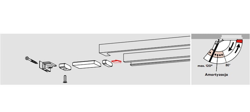 Amortyzowany ogranicznik zapobiega uderzeniu w przyległą ścianę przy normalnym otwieraniu. Ogranicznik nie jest zabezpieczeniem wytrzymałym i w wielu przypadkach nie zastępuje odbojnika drzwiowego.