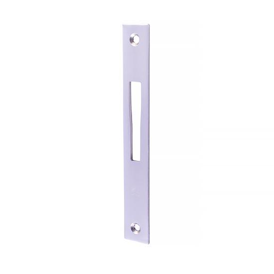 Zaczep ROMB płaski 24D-180 przeznaczony do współpracy z zamkami dodatkowymi w drzwiach. Stosowany w systemach zabezpieczeń oraz instalacjach drzwiowych, gdzie wymagane jest solidne i stabilne osadzenie rygla zamka.