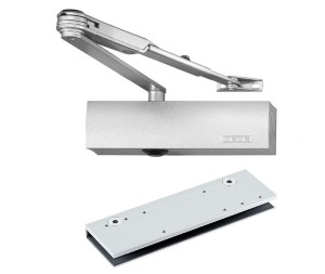 Samozamykacz ramieniowy do drzwi jednoskrzydłowych z funkcją tłumienia otwierania i blokadą otwarcia