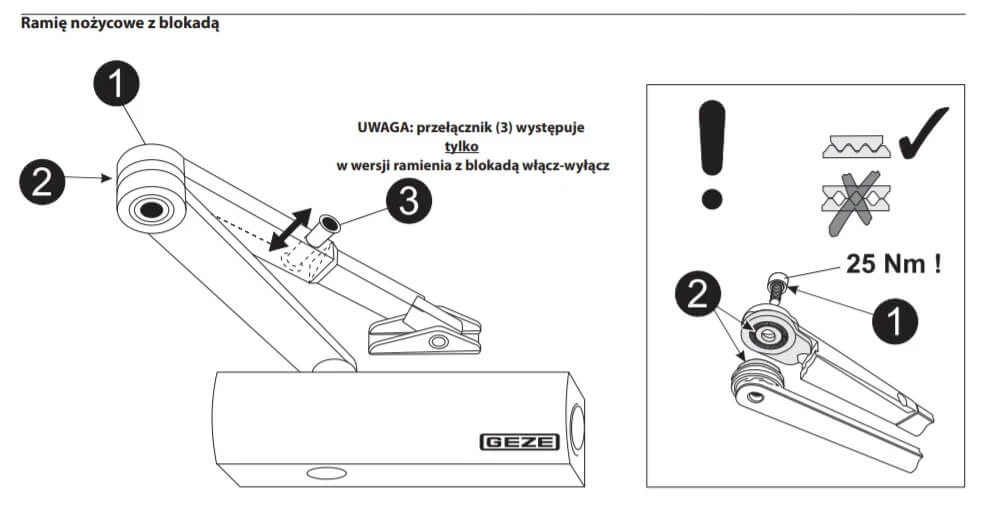 Przełącznik dezaktywujący blokadę bez potrzeby rozkręcania ramienia