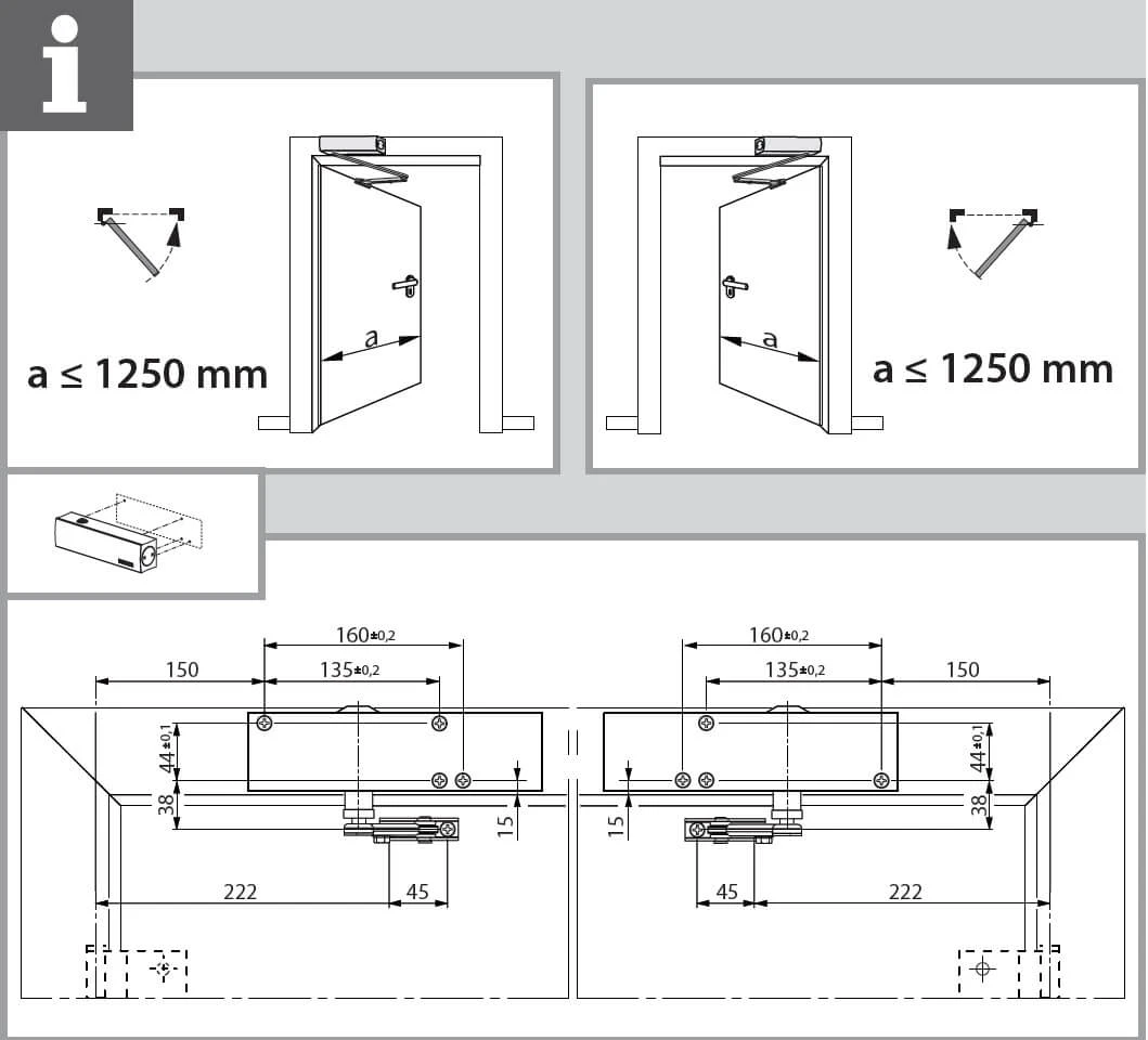 Do drzwi rozwieranych 1-skrzydłowych o szerokości skrzydła do 1250 mm