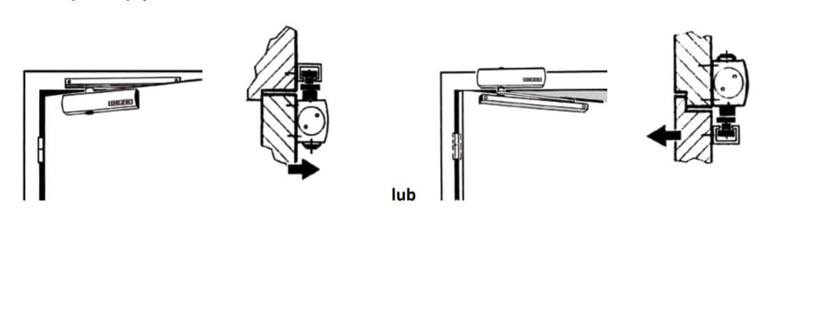 UWAGA! Przy montażu samozamykacza z szyną skrzydło powinno być zlicowane na równi z ościeżnicą