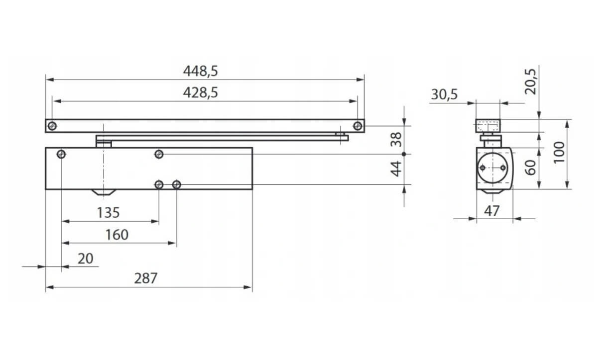Drzwi przymykowe o szerokości skrzydła do 1400 mm do 120kg