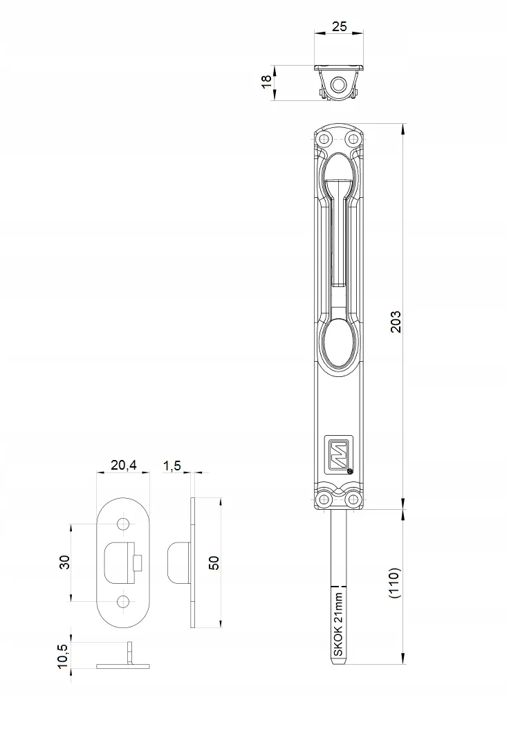 - - 2x Zaczep rygla (gniazdo montażowe)