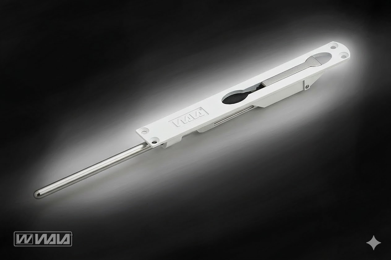 Wysokiej jakości rygiel wpuszczany WALA WL przeznaczony do dyskretnego blokowania skrzydła biernego w drzwiach aluminiowych oraz PVC. W przeciwieństwie do modeli nawierzchniowych, rygiel WL montowany jest wewnątrz profilu, co pozwala na zachowanie całkowicie gładkiej powierzchni krawędzi drzwi i podnosi estetykę całego zestawu.