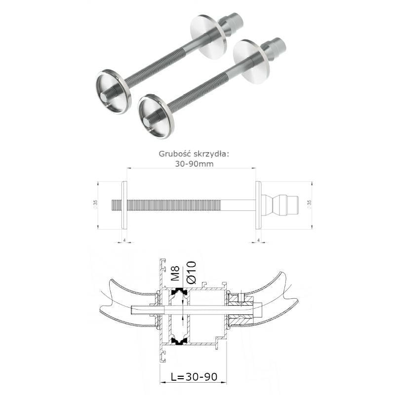 Łatwy Montaż: W komplecie otrzymujesz zestaw mocujący (śruby z kontrą) do skrzydeł drzwiowych o grubości [30-95 mm].
