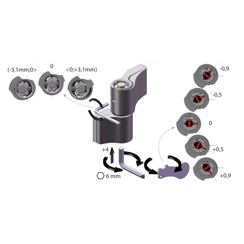 - Regulacja 3D: Pełna kontrola pionu, poziomu i docisku bez konieczności demontażu skrzydła.