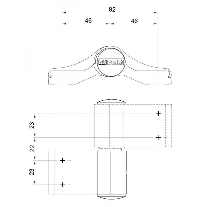 WALA Zawias WX, 2-skrzydełkowy 92mm, symetryczny (antracyt)