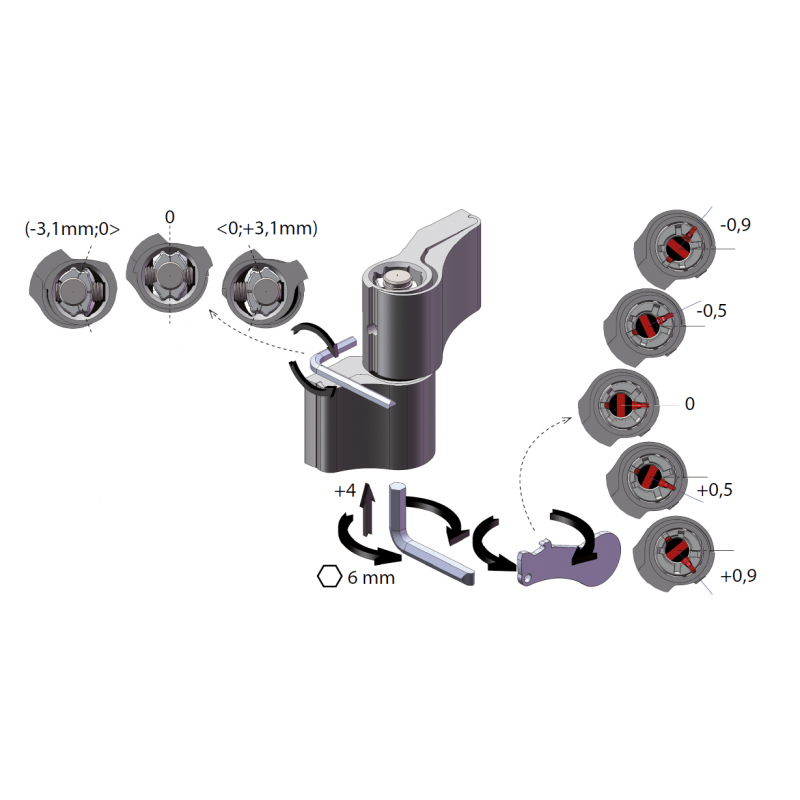 - Regulacja 3D: Pełna kontrola pionu, poziomu i docisku bez konieczności demontażu skrzydła.