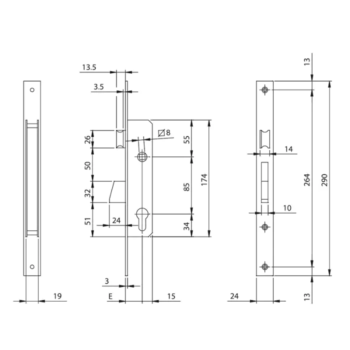 Dokładnie opisane parametry, co ułatwia dobór zamka do konkretnej ramy drzwiowej.