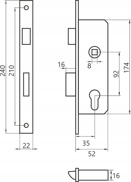 LOB Z9235B Zamek wpuszczany do stolarki aluminiowej, 92/35 mm