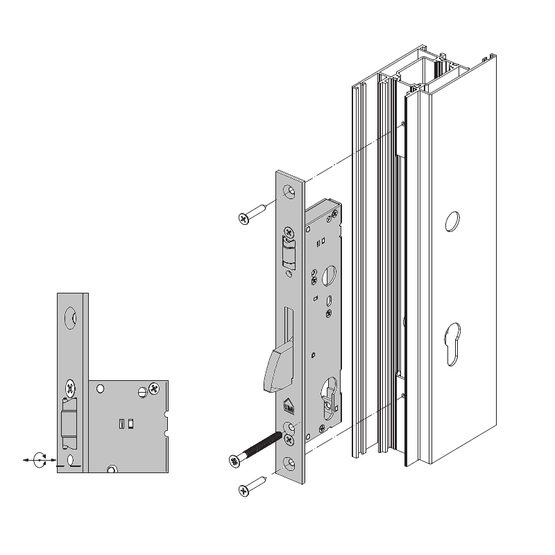 Profesjonalny zamek rolkowy polskiej marki ROMB z serii KARO, przeznaczony do wąskich profili aluminiowych oraz stolarki PVC. Jest to idealne rozwiązanie do drzwi wyposażonych w pochwyt (antabę) zamiast klasycznej klamki.