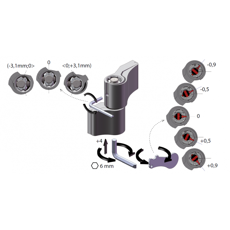 - Regulacja 3D: Pełna kontrola pionu, poziomu i docisku bez konieczności demontażu skrzydła.
